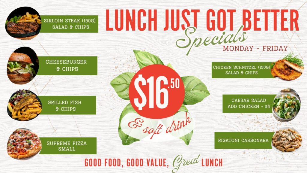 Take a break from the everyday and tuck into one of our tasty lunch specials — all just $16.50, and each one comes with a free soft drink.